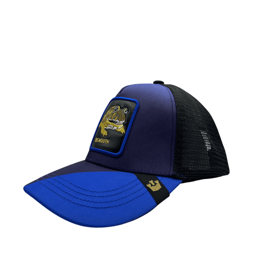 Stand out with the BIG MOUTH Trucker Cap , featuring a stylish gradient blue and black front panel with a breathable mesh back for enhanced comfort. The cap showcases an intricately embroidered frog patch with the words "BIG MOUTH" , adding a playful yet bold touch to your outfit. Designed for durability and a perfect fit, this cap is ideal for casual wear, outdoor adventures, and street fashion. Product Details Material Polyester fabric color Blue/purple/Black brand GOORIN BROS The back part Mesh Size adjustment Adjustable Design Stylish Durability Durable Gender Men Warranty 6 Months