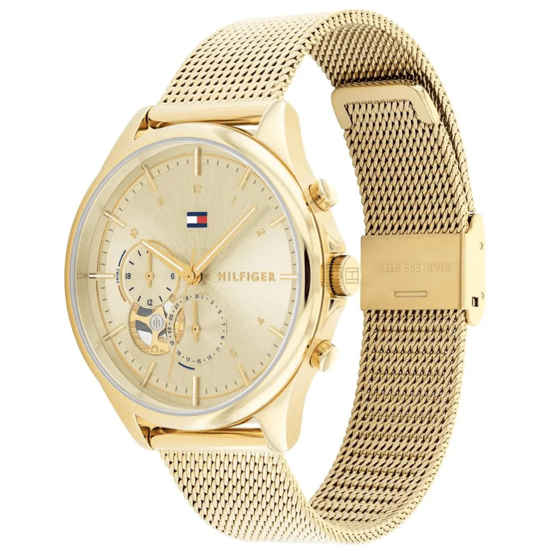 tommy Hilfiger watches embody a modern elegance that blends classic style with a youthful touch. The designs are sophisticated yet simple, featuring high-quality materials and attention to detail. Product Details Brand Tommy Hilfiger Box Original Factory Box Papers Original Factory Papers Strap Material Stainless steel Strap Color Gold Case Material Stainless Steel Case Color Gold Case Water Resistance 30Atm Movement Quartz Case Size 38mm Strap Width 22mm Brand Tommy Hilfiger Gender Women Warranty 2 Years